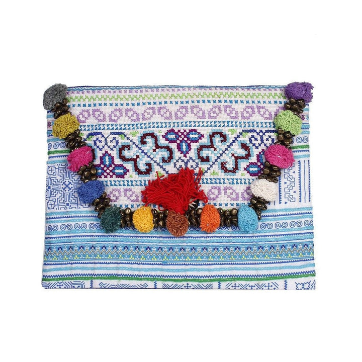 Repurposed Pom Poms and Bells Vintage Hmong Clutch - Thailand