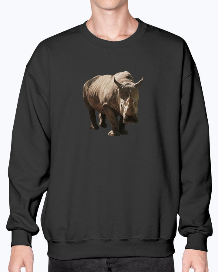 Rhino's Stance, Animal Lover Gift, Wildlife Sweatshirt, Nature Apparel, Thoughtful Gift, Eco-Conscious Fashion, Moss Apparel, Unisex Crewneck Sweatshirt