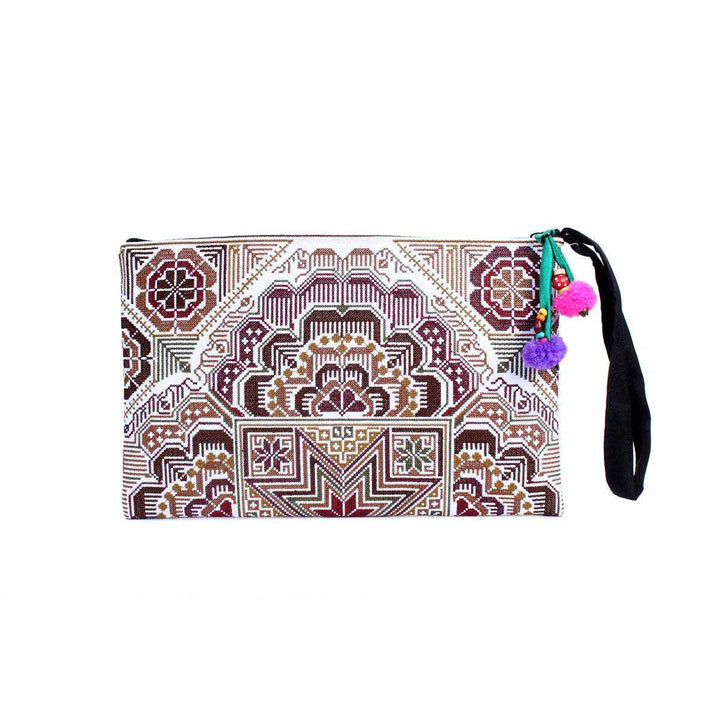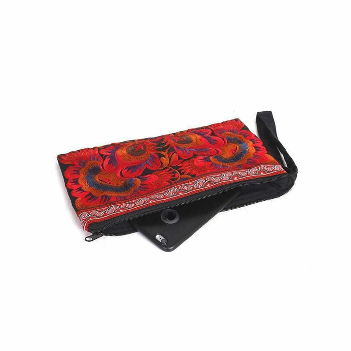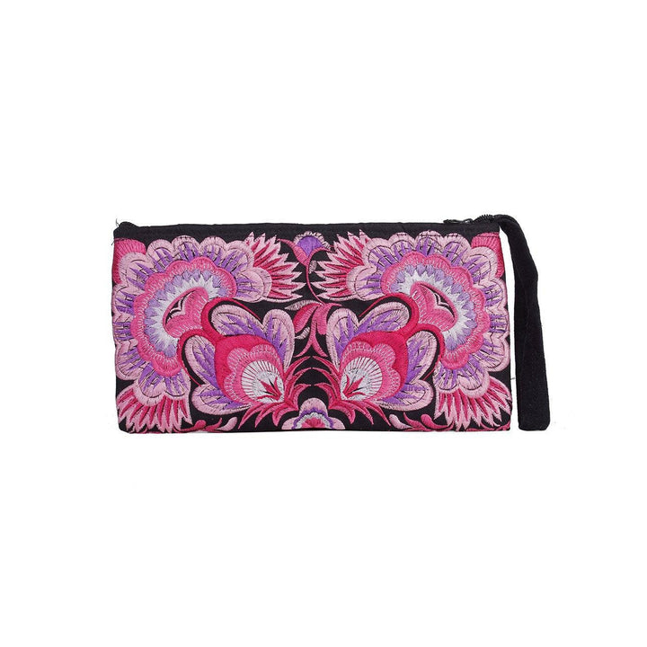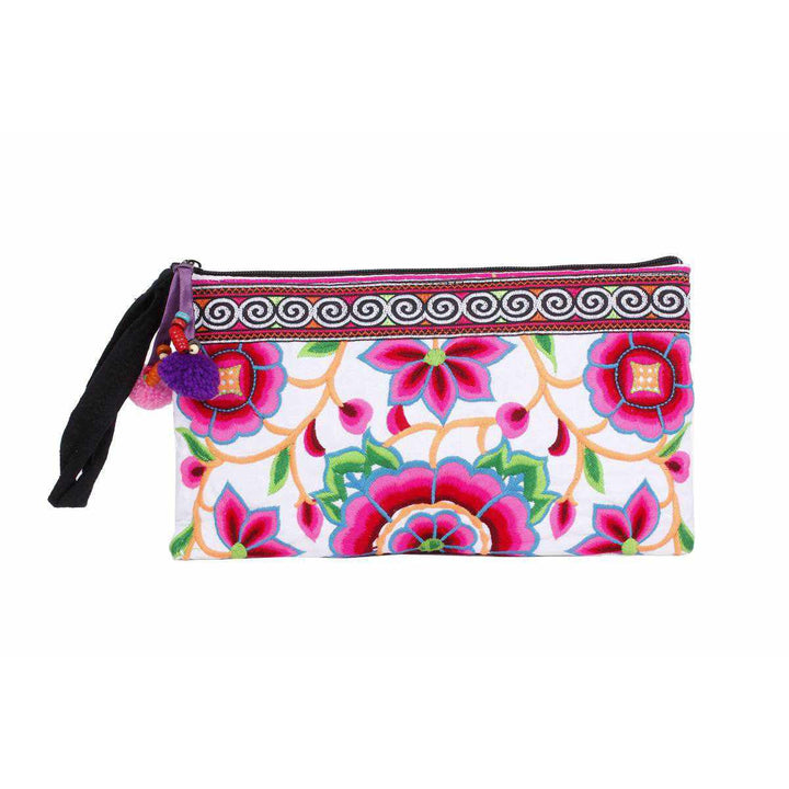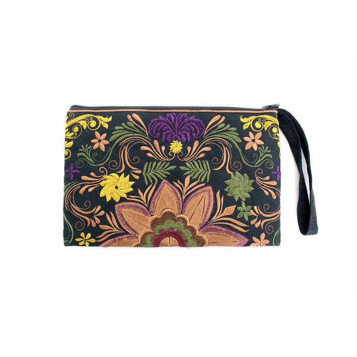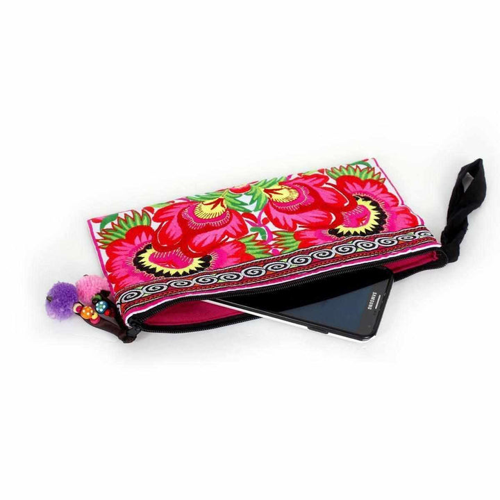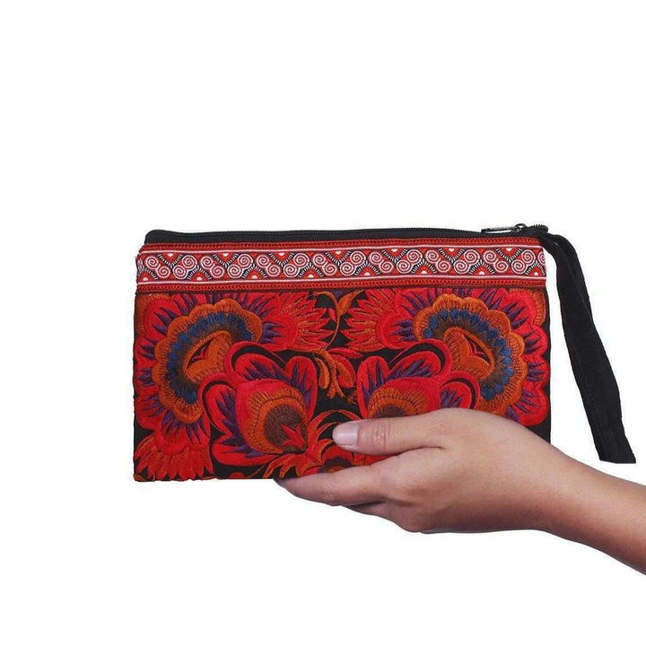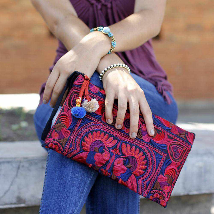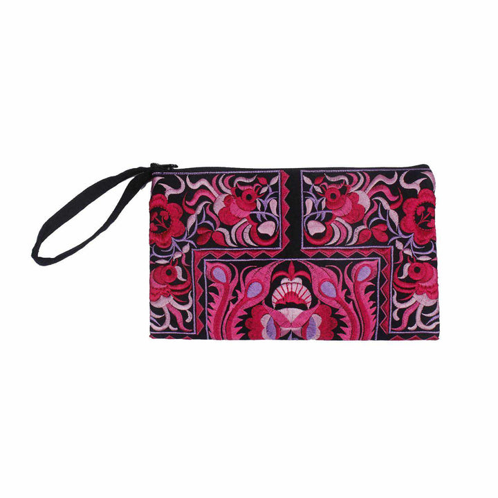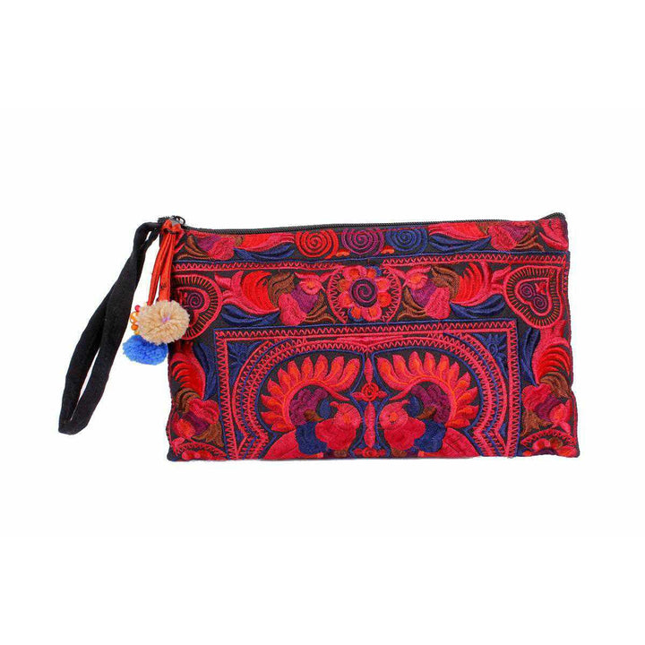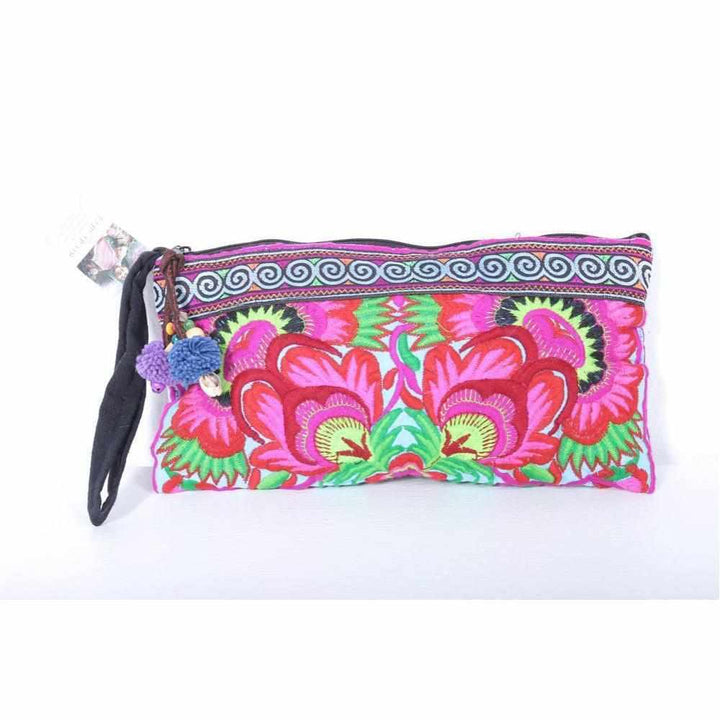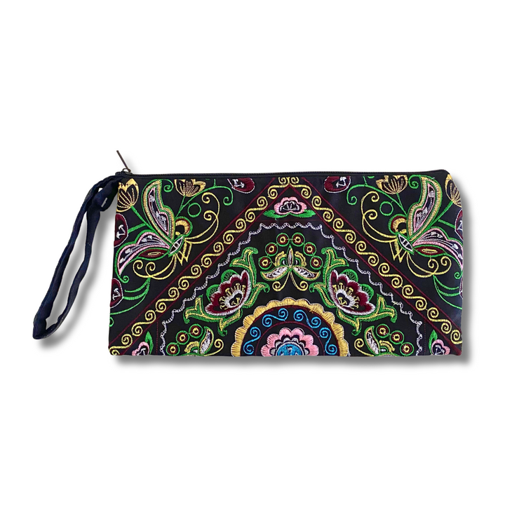 This gorgeous and versatile embroidered wristlet is part of our Thai Collection of embroidered bags. Handmade in Northern Thailand by our artisan partners using colorful fabrics in traditional Hmong patterns. One of our best selling pieces in our bag collection!