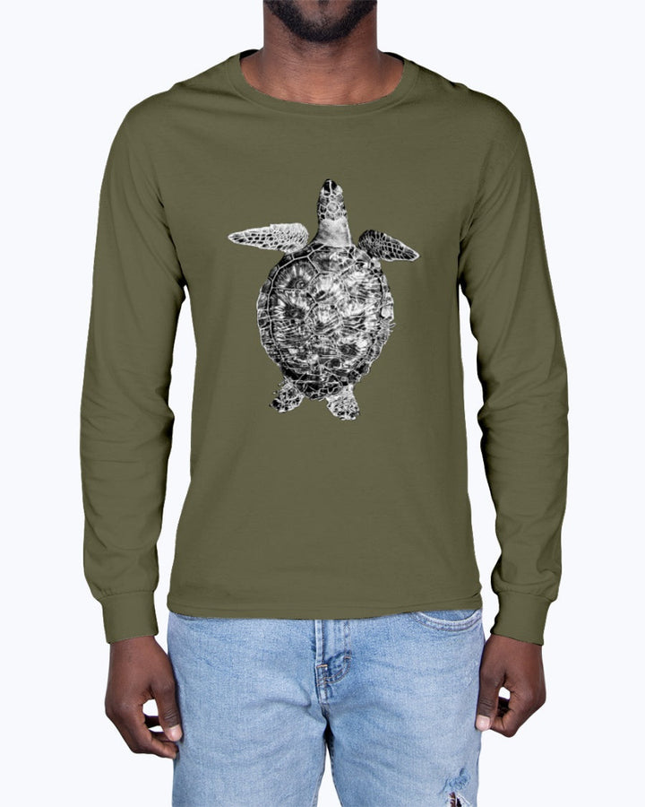 Experience the perfect fusion of soft-touch luxury and everyday versatility with our Sea Turtle Swimming Long Sleeve Tee. Woven from 100% Airlume combed and ring-spun cotton, it promises an exceptionally smooth, breathable feel that's light as air. Enjoy a flattering, tailored silhouette with perfectly fitted sleeves and secure ribbed cuffs, all enhanced by durable side-seamed construction. This isn't just a shirt; it's your go-to for lasting comfort and style, built to withstand daily wear and countless washes. With a convenient tear-away label, it's comfort personified. Embrace its simplicity and versatility, whether worn alone or layered – it's designed for the wild heart. Plus, your choice makes a difference: supporting Sea Turtle Conservation with every purchase.