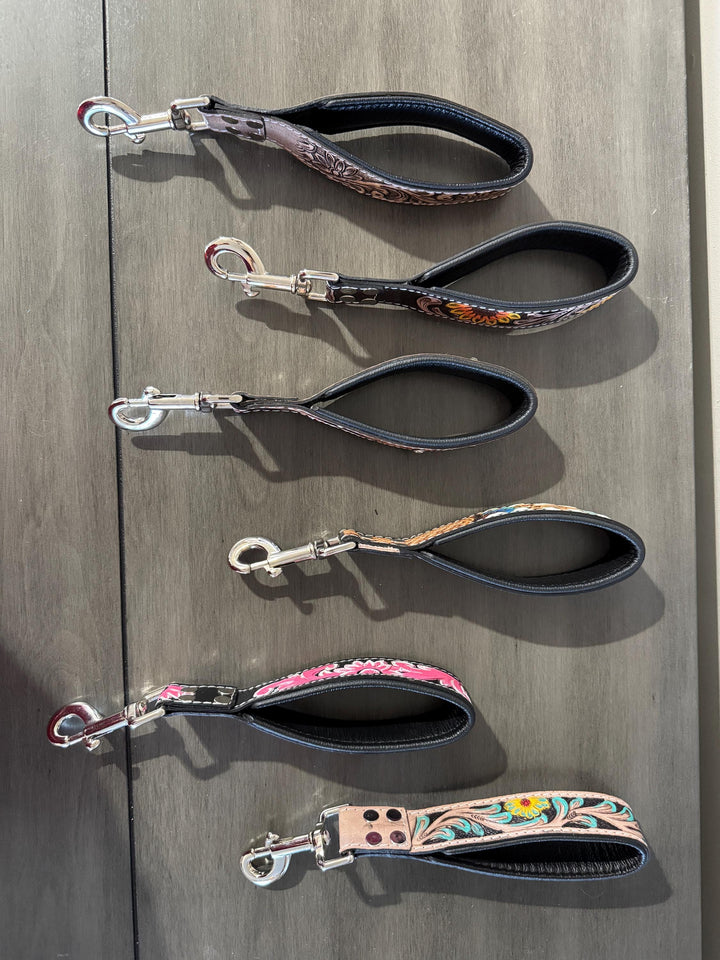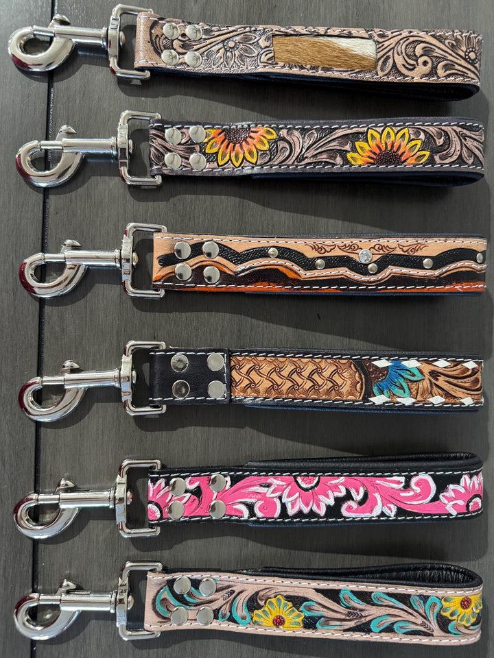 Short Western genuine leather dog pet leash for hiking or training by Double B Wild Rags