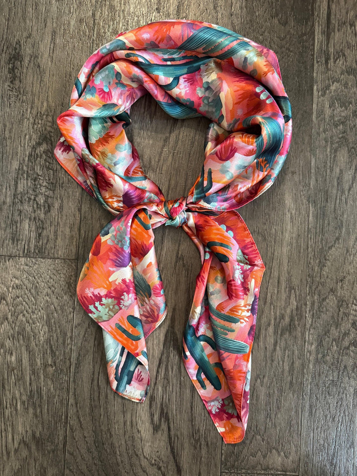 Silk Wild Rag Pink Purple Orange Green Cactus by Double B Wild Rags