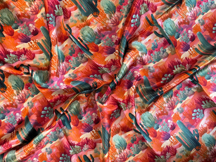 Color: Pink Purple Green Orange Ivory cactus desert pattern