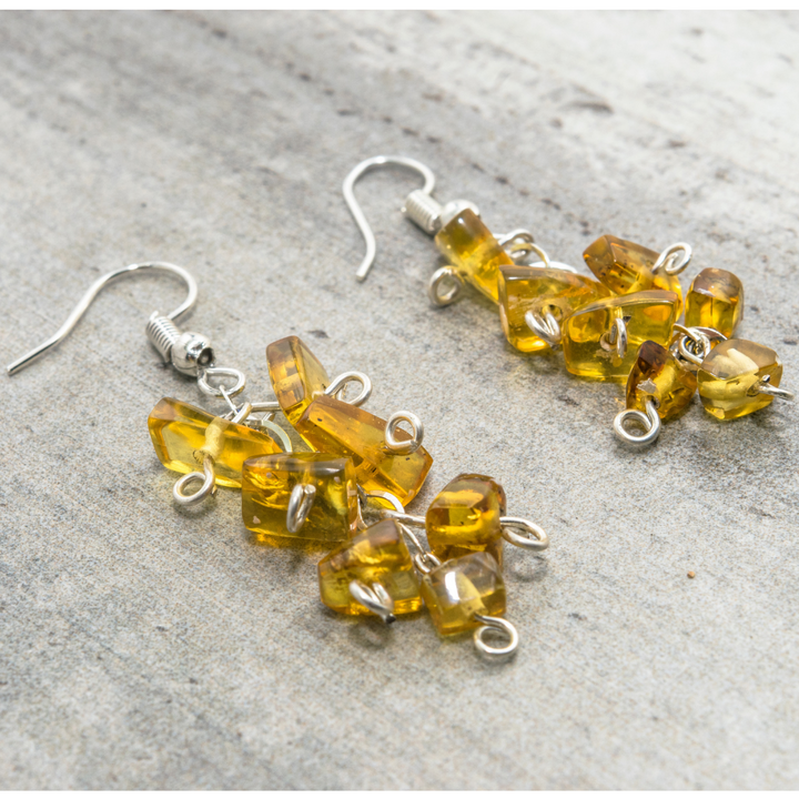 Natural amber is a fossilized resin, and no two pieces are alike in shape and color.