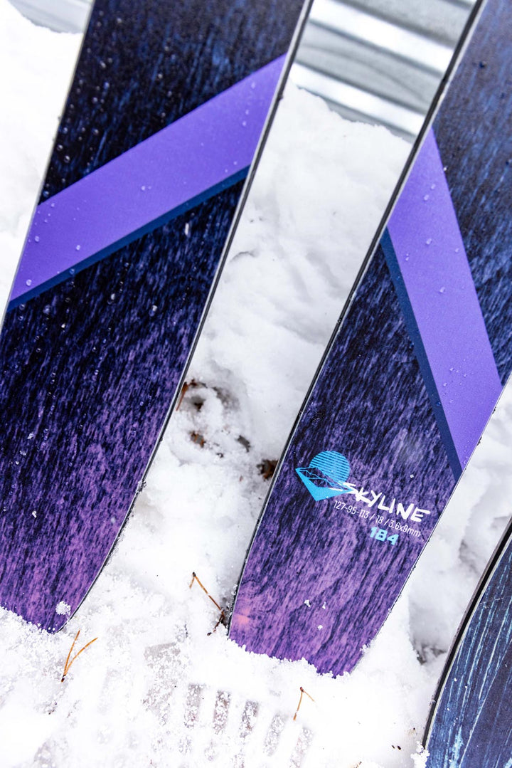 The traditional camber profile and tighter turn radius give the Skyline a lively, responsive feel underfoot - perfect for laying trenches on groomers, navigating variable snow, or threading through trees. Early rise in the tip provides just enough lift in soft snow, while camber keeps things stable and predictable when conditions get firm or fast.