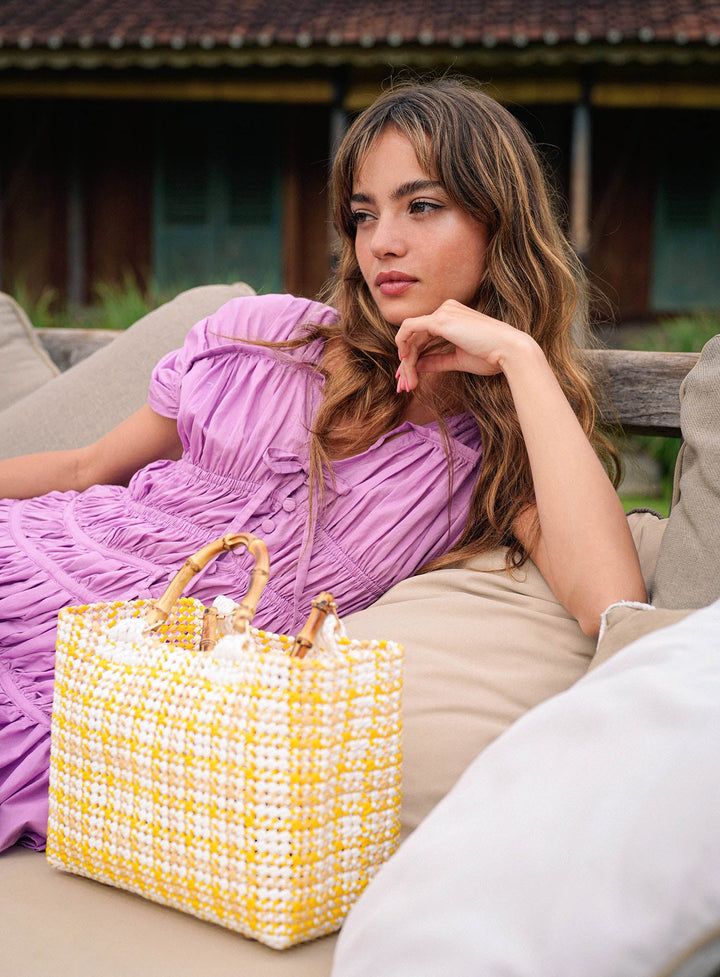 The Srikandi dress is an exquisite masterpiece, thoughtfully crafted by our skilled artisans in Bali. Designed with a captivating elegance, its intricate layered ruffles flow with every movement, ensuring you remain the focal point of attention in any setting.