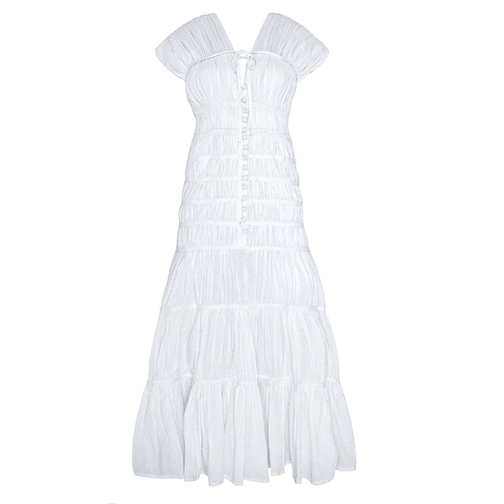 The Srikandi dress is a mesmerizing creation, meticulously handcrafted by our talented artisans in Bali. Its graceful layered ruffles flow effortlessly with your every movement, turning each step into a statement of elegance that commands attention.