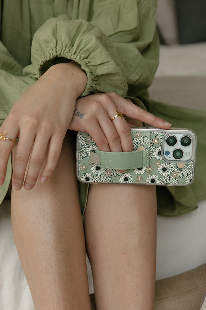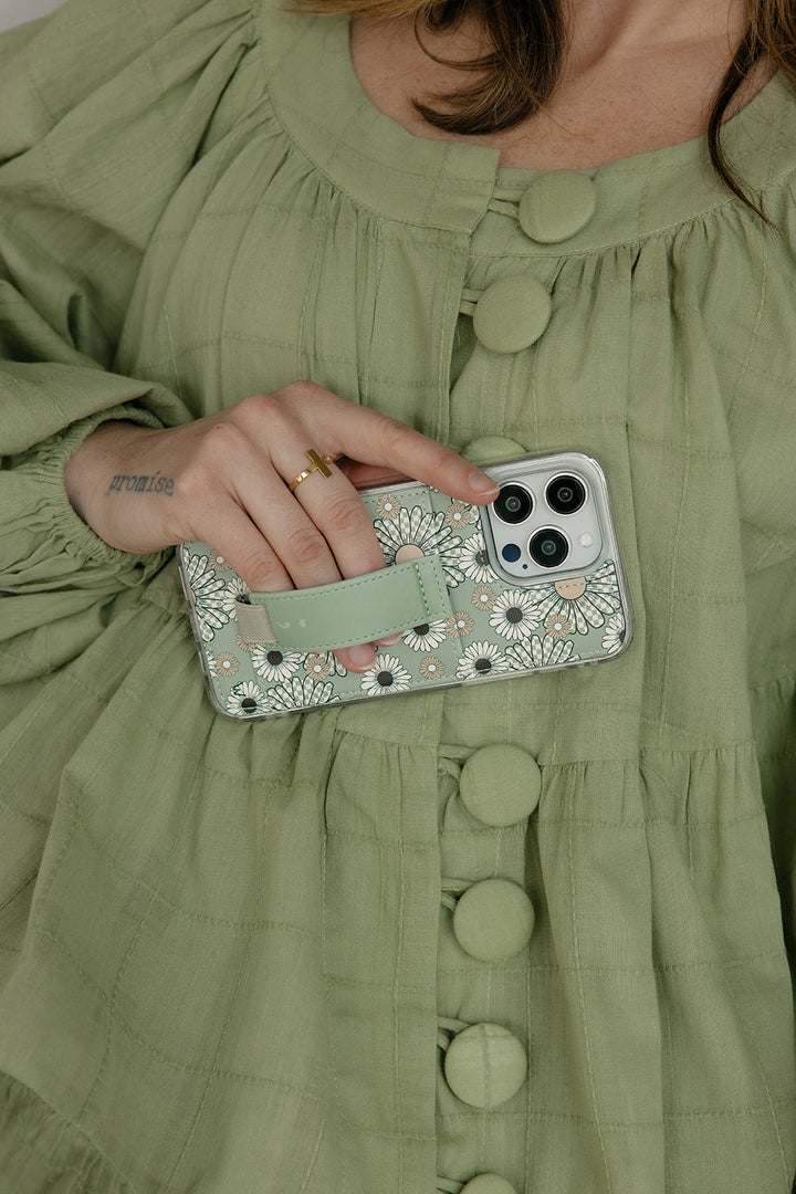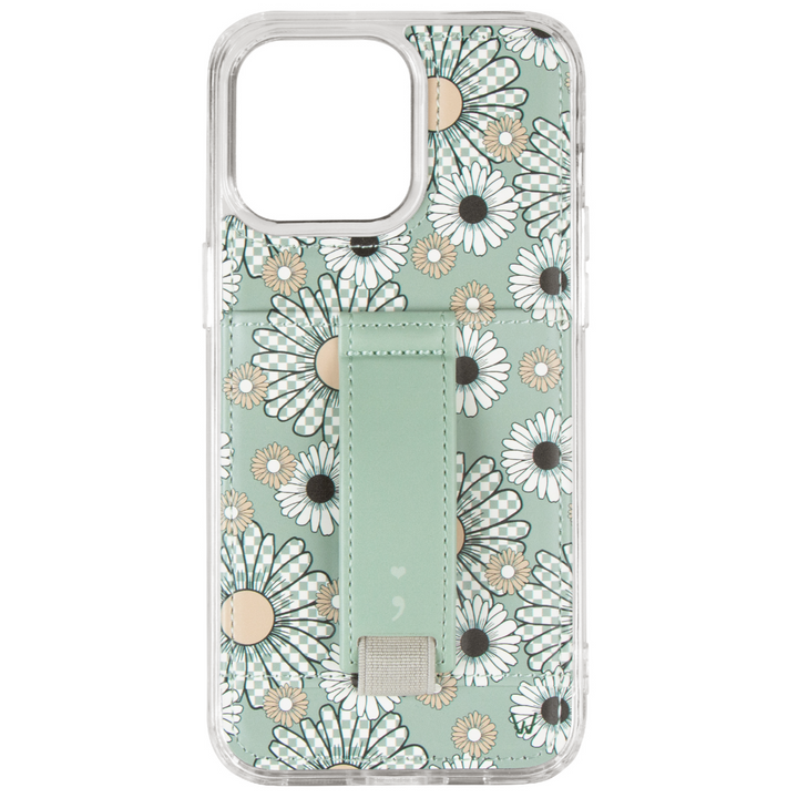Case Design: Checkered green and white flowers on a green background