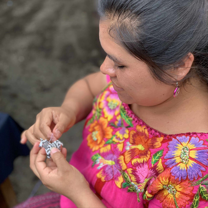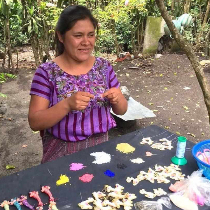 These keychains are true works of art, handcrafted by Yulisa using tiny glass seed beads in the highlands of Guatemala. Our skilled artisans create them from memory, a talent that takes years to master.