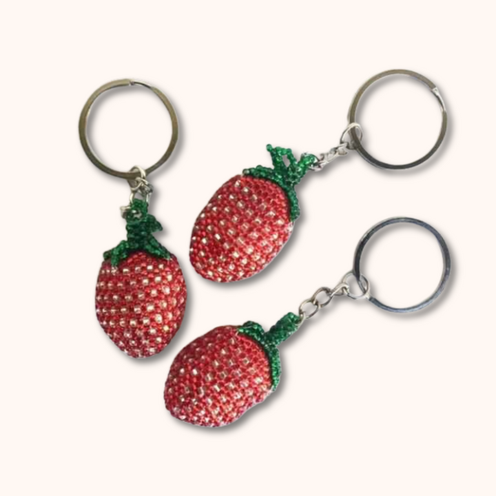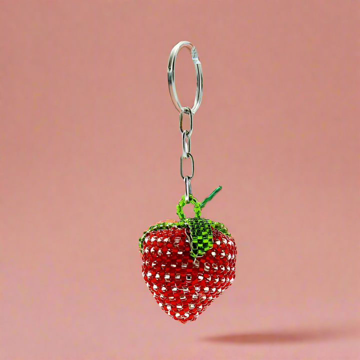 Strawberry Seed Bead Handmade Keychain - Guatemala