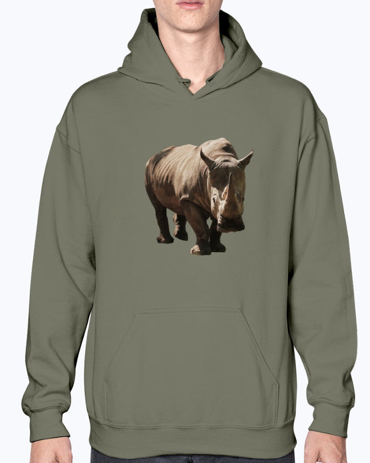 Stylish Rhino Hoodie, Moss Apparel, Cozy Animal Sweatshirt, Wildlife Apparel, Gift for Nature Lovers, Eco-Friendly Fashion Hoodie