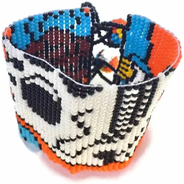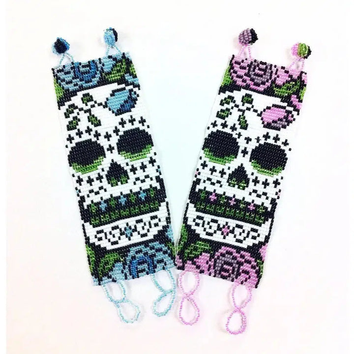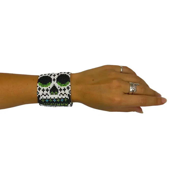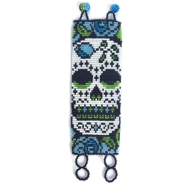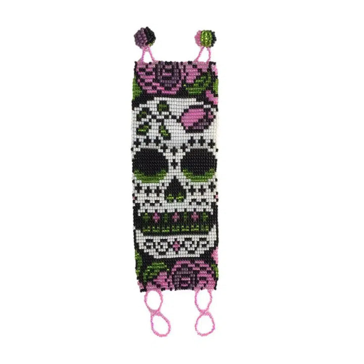 Step into the timeless charm with our Sugar Skull bracelet, meticulously hand-beaded by skilled artisan Maria in the highlands of Guatemala. Each piece is a unique masterpiece, woven with vibrant Czech glass seed beads, creating captivating designs.