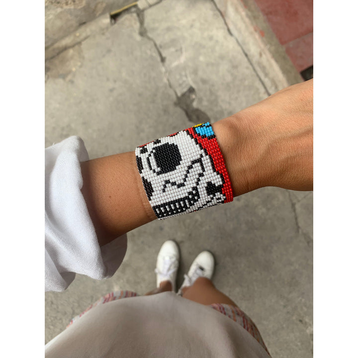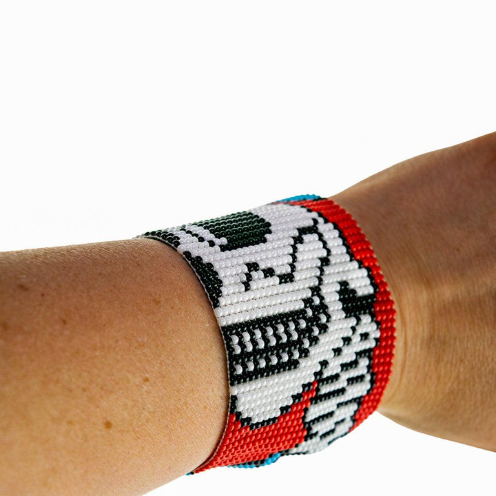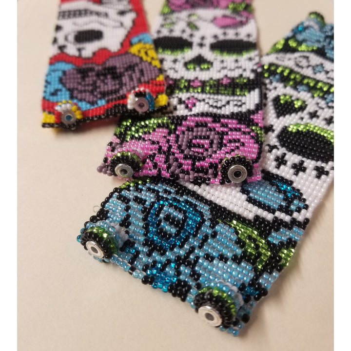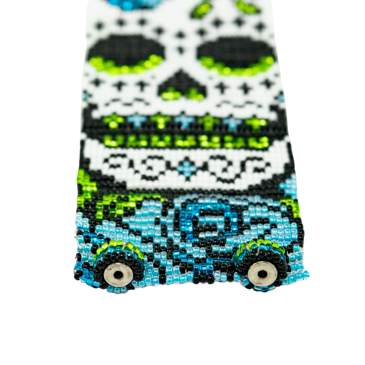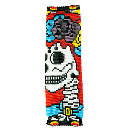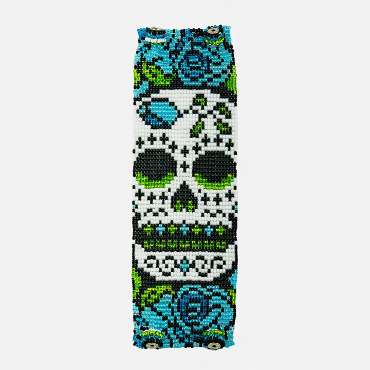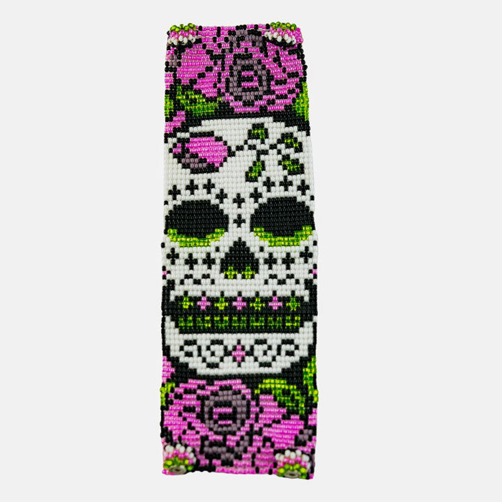 Elevate your style with our exquisite Sugar Skull bracelet, a true work of art meticulously hand-beaded by our skilled artisans in Guatemala. Each bracelet is a masterpiece, meticulously woven together using brilliantly colored Czech glass seed beads to create striking and unique designs.