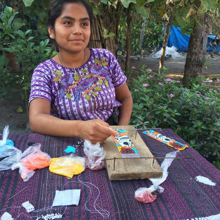 Crafted with care and expertise by artisan Maria, this Sugar Skull bracelet not only adds a vibrant touch to your ensemble but also supports fair trade and the livelihoods of talented artisans. Embrace the beauty of Guatemala's craftsmanship and make a statement with purpose. Order your one-of-a-kind Sugar Skull bracelet today.
