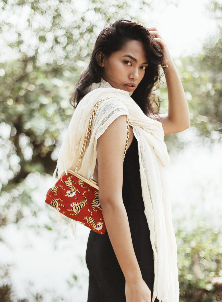 This clutch is our exclusive collection to shine the light to Indonesia's Sumatran tiger, one of the world's critically endangered animals. According to WWF, there are only fewer than 400 Sumatran tigers left and if deforestation & poaching action continues, the Sumatran tiger could be the first large carnivore animal to go extinct in the 21st century.