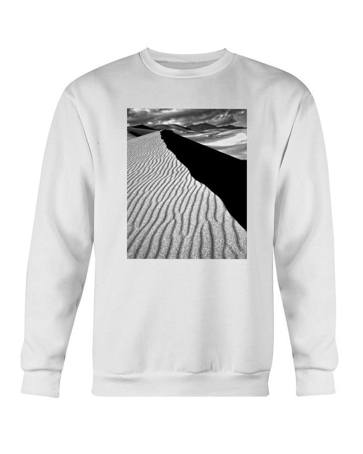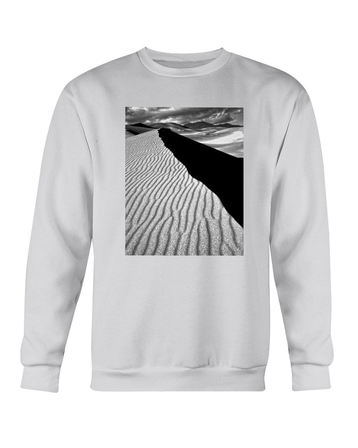 Embrace the serene beauty of the desert with the Sunset Over Sand Dunes Unisex Heavy Blend Crewneck Sweatshirt, captured by Robert Moss in Colorado's breathtaking Great Sand Dunes National Park. This stunning image of a warm sunset casting shadows over the rolling dunes brings nature’s timeless elegance to a cozy and versatile wardrobe staple.