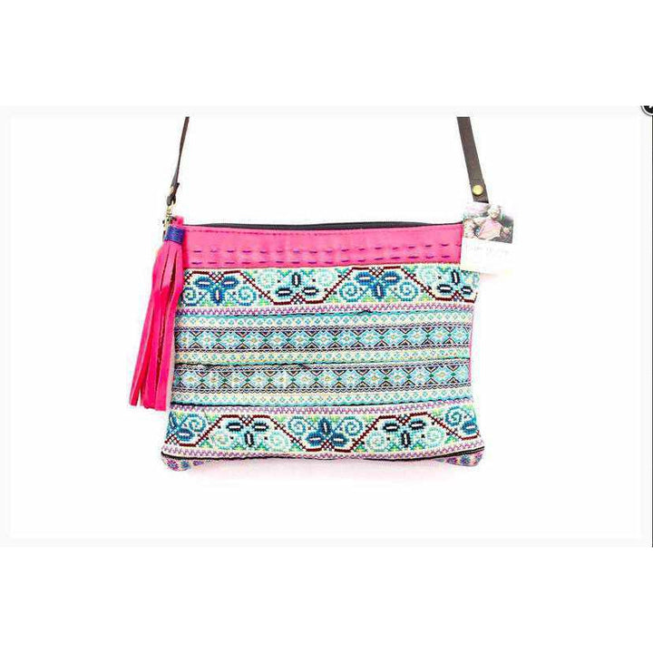 Gorgeous fabric up-cycled from a traditional Hmong baby carrier or traditional jacket is used to make this gorgeous, limited edition bag. Topped with soft leather and lined inside with inner pocket.