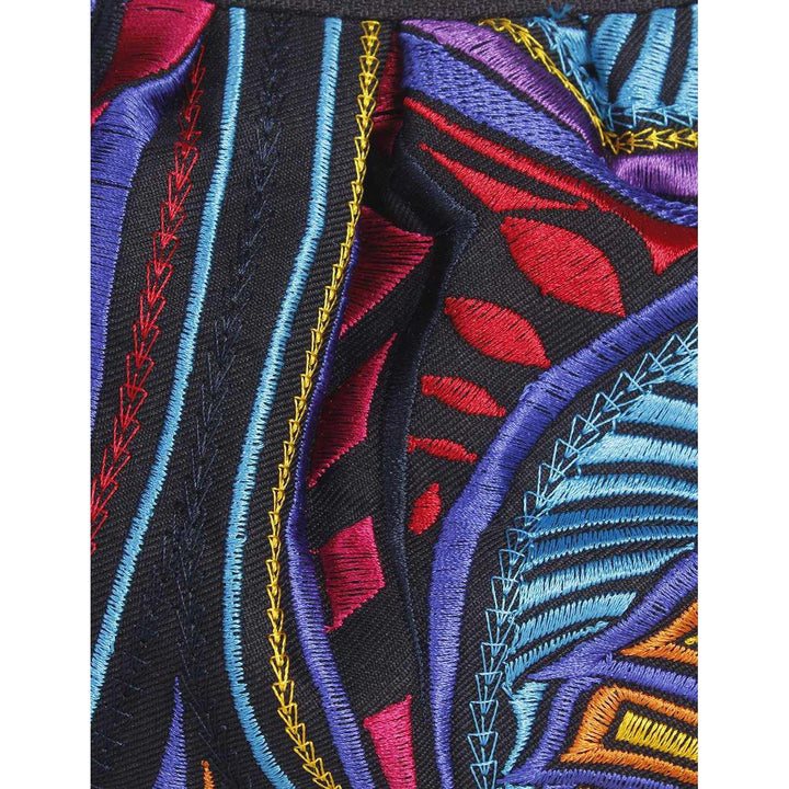 Our Tahj limited edition collection is created from gorgeous embroidery in contrasting hues. Our wristlet is one of the best selling items in the collection! It is lined inside with an inside pocket.