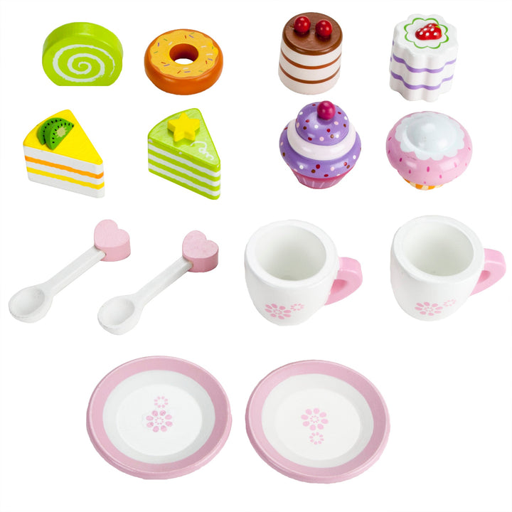 This pastry tower makes one sensational centerpiece! So fill up your tea cup, stir in a little milk, and sample one of these delectable treats! Do you know which one you'd like to try first? I see delicate layer cakes, a crème roll, a colossal cupcake, even a cream puff. And it all looks so delicious! Why don't we each take one and share?