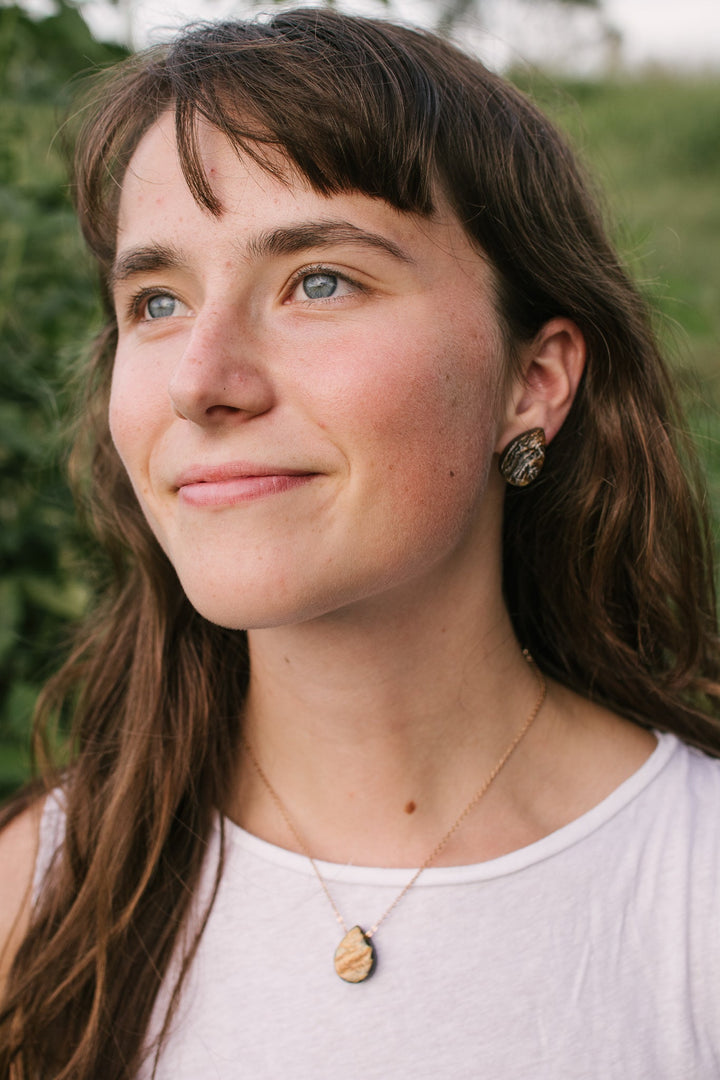 Horn shaped into a teardrop and placed on a dainty rose gold chain. A perfect every day necklace! And it gets even better because there are matching earrings available.