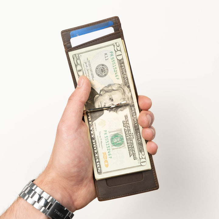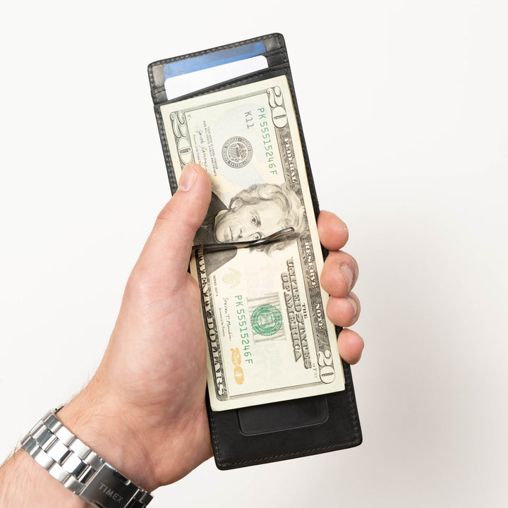 This remixed take on the traditional bifold wallet contains our unique pull tab feature in the back, and our quick access notch in the front, for accessing your most used cards with ease. On the inside, there’s an ID window and money clip for keeping things organized.