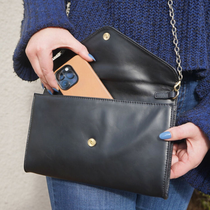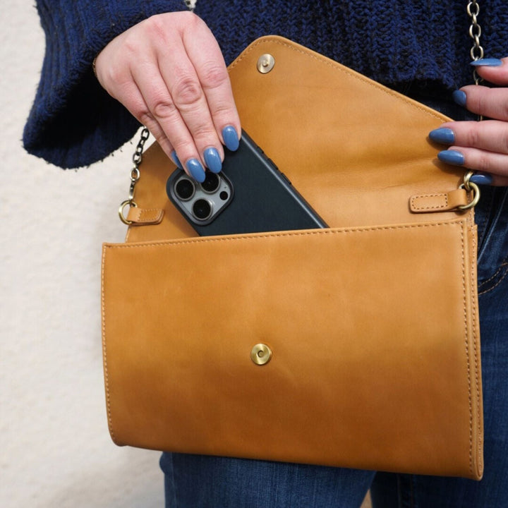 Discover the Charli: a chic full-grain leather clutch that combines elegance with practicality. Its magnetic feature allows for a secure and stylish fit inside our Page tote. Perfect for essentials, the Charli is the ultimate accessory for seamless transitions from day to night.