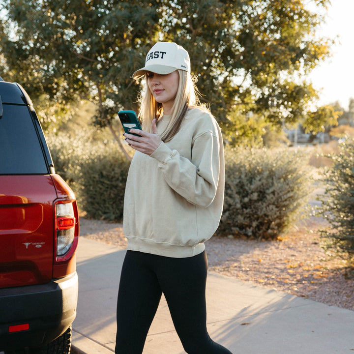 Discover "The East Hat," a stylish homage to the vibrant energy and timeless elegance of the East Coast. Featuring a cream crown and tan bill, this two-tone cap boldly displays "EAST" in striking script. The subtle "Andar" detail on the side adds a touch of exclusivity. Perfect for those who carry the sophisticated spirit of the East in their hearts, this hat is designed for comfort, durability, and a refined sense of style.