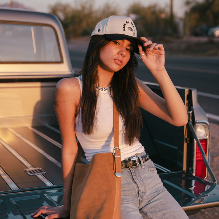Celebrate the heritage of the West with The Horseshoe Hat, featuring "Made by the West" embroidery in a horseshoe design. Built with a structured fit and designed for comfort, this cap brings a touch of frontier style to any outfit. Side details include an embroidered number 9 to mark our 9th anniversary and a cattle-brand-style logo for an authentic Western feel. It's the perfect way to show your love for the trailblazing spirit of the West.