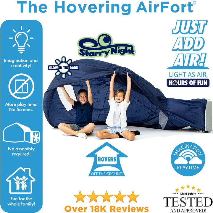 Looking for a bright way to add some sparkle to your child’s play? The Starry Night AirFort will have you feeling like your laying under the stars at any time of day. With our classic AirFort structure, you can host a stargazing party for all of your little ones!