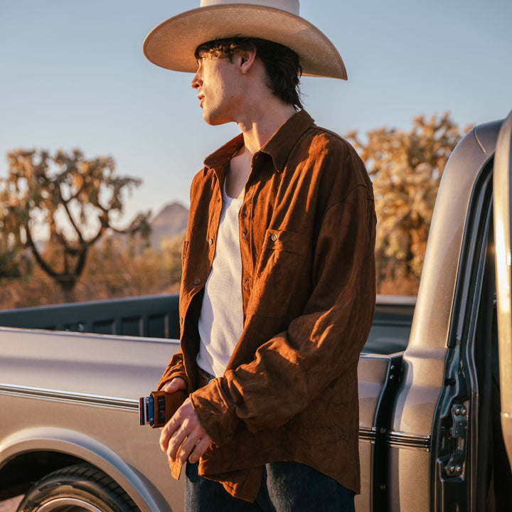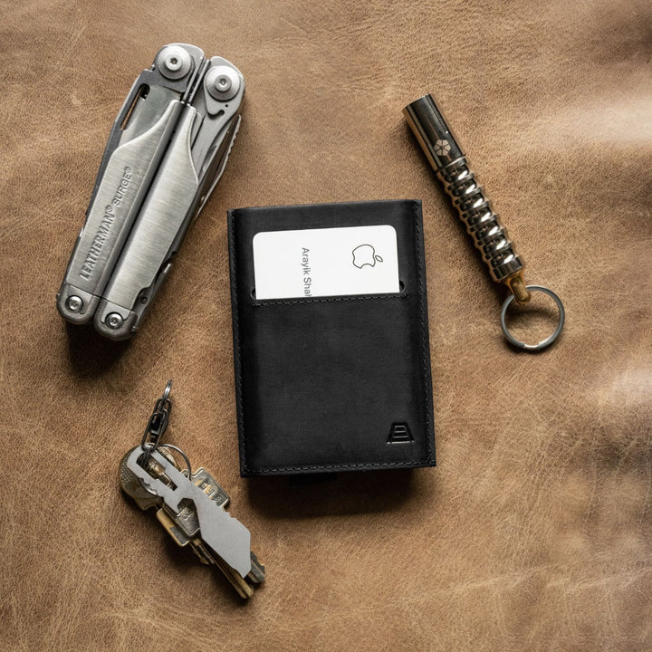 With The Pilot wallet, your cards are accessible with one quick maneuver. Simply pull the trigger to make your cards fan out.