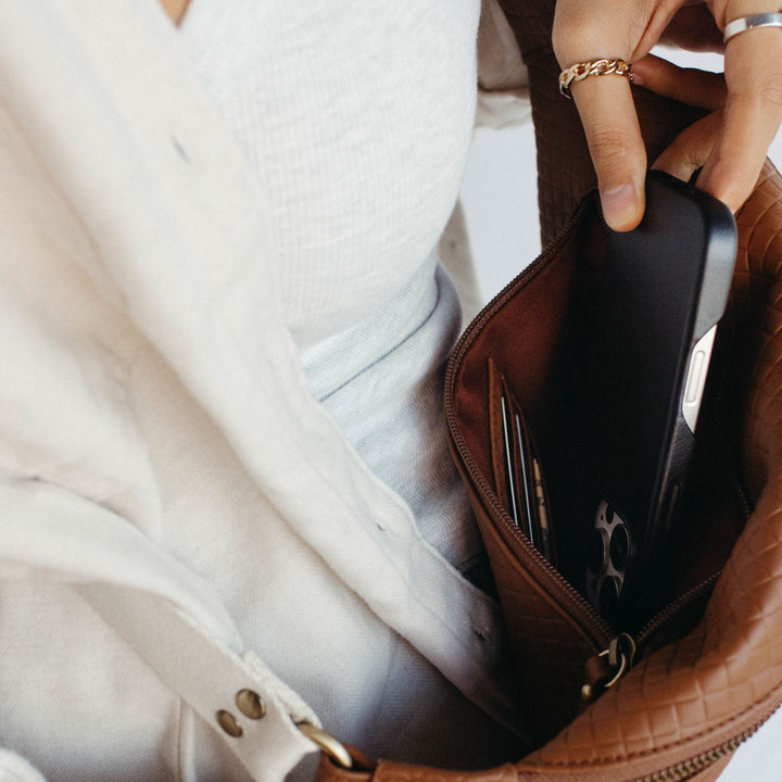 We’ve teamed up with Tia Booth Mock to create the Tatum Bum Bag. Tia designed this bag to fit her needs as a busy mom and full-time creator. The Tatum is large enough to fit all of the essentials for mom life and small enough to be used for everyday carry. Made of full grain leather, has a zippered back pocket with a built in wallet and the strap is removable, for easy cleaning or to mix and match with our other available straps.