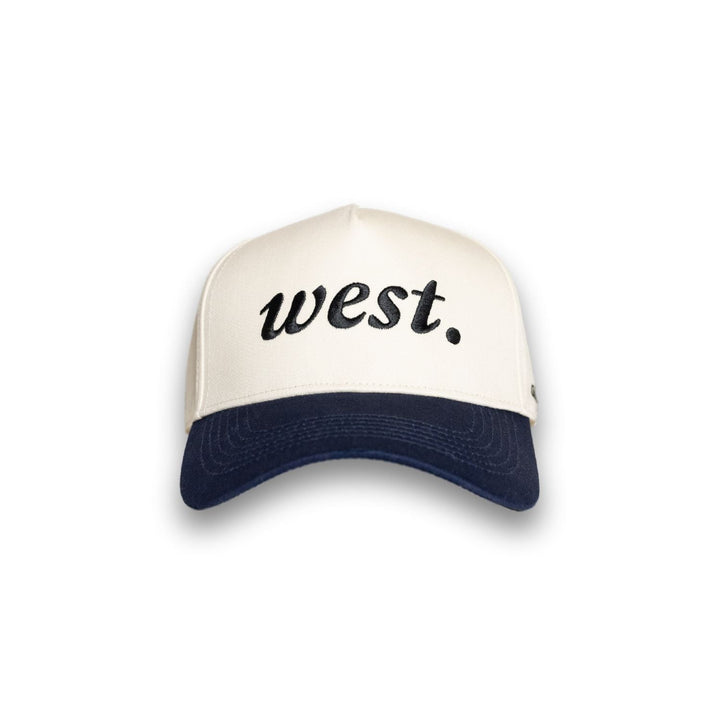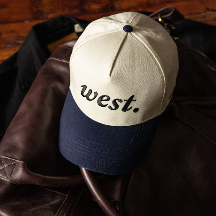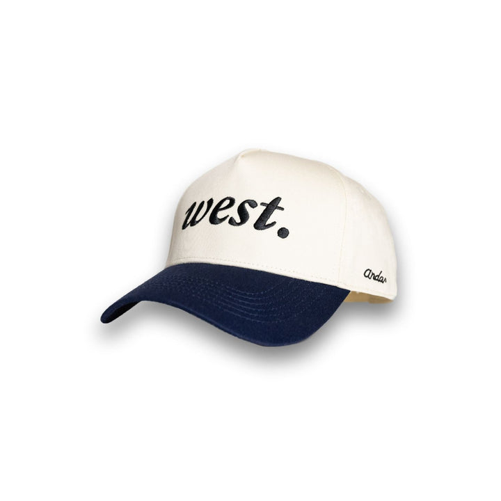 Discover the "The West Hat," a stylish homage to the American West's pioneering spirit. A classic cream crown and navy bill frame the bold "west." script, while "Andar" subtly brands the side. Perfect for those who carry the wild, untamed spirit of the West in their hearts, this hat is designed for comfort, durability, and a timeless sense of style.