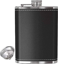 - Stainless Steel Leather Wrapped Flask w/ Funnel