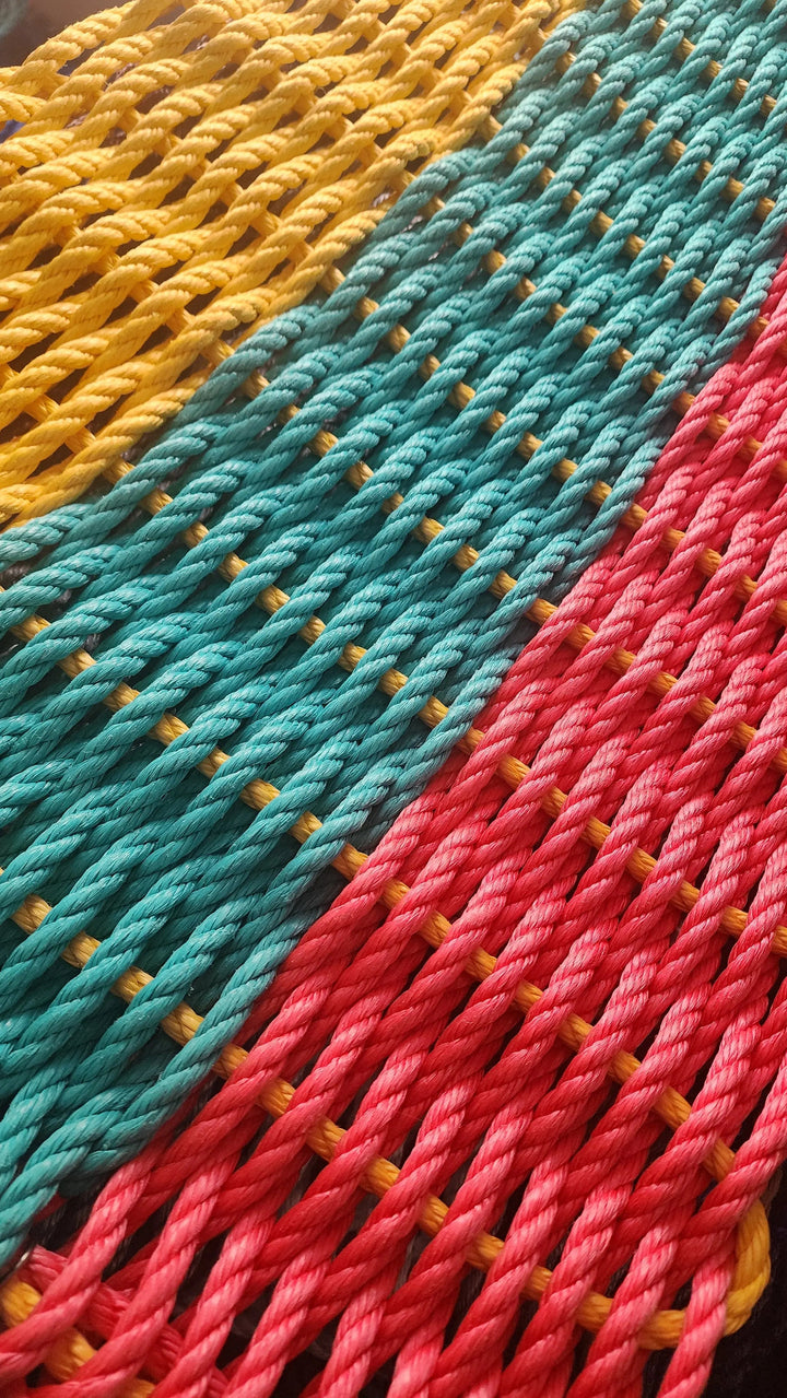 Three Stripe RopeMat Pink Teal Yellow
