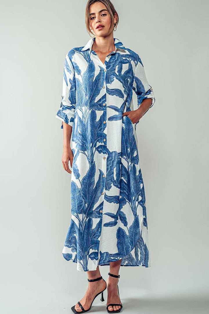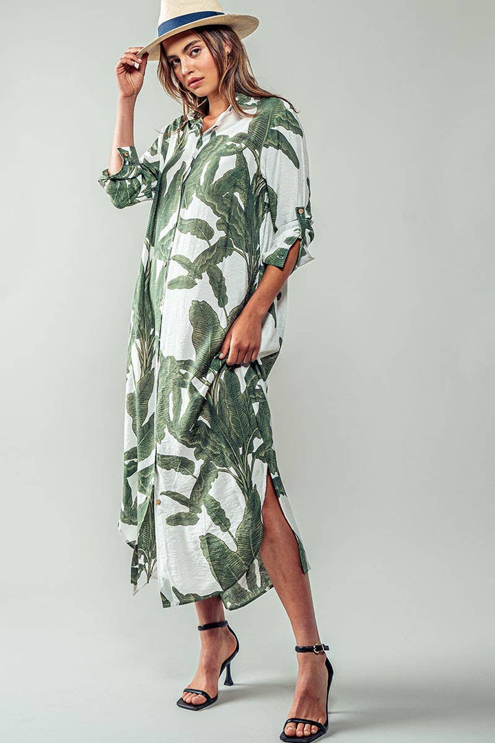 Tropical Palm Leaf Button-Down Midi Dress - Resort and Spring Collection