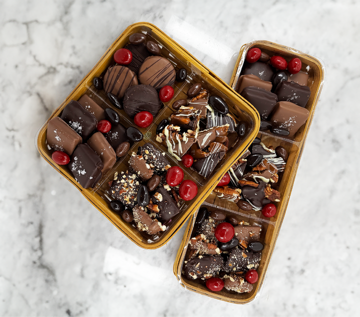 Discover the Twin Cities Trio, a delightful selection of our finest treats. This three section wicker tray features our signature toffee, creamy caramel, and our beloved Loon Pies, perfect for any occasion. Indulge in the taste of Minnesota's best confections!