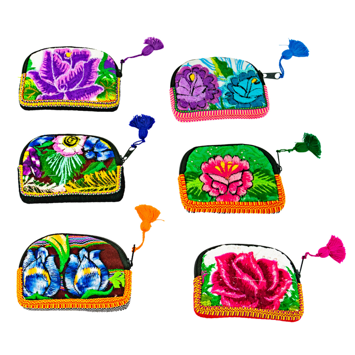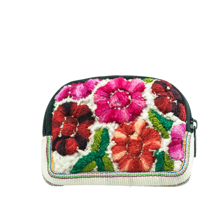 Make a statement with our one-of-a-kind, eco-friendly Half Moon Cosmetic Bags! Crafted from upcycled, traditional embroidered blouses worn by Mayan women in Guatemala, these bags are lightly padded and lined for extra durability and comfort. Each bag represents a piece of Mayan cultural heritage, while your fair trade purchase helps economically empower female artisans like Laura and her team in the highlands of Guatemala.