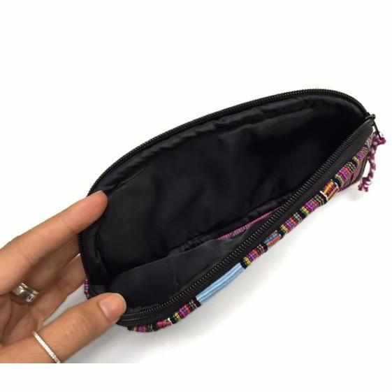 Up-cycled Half Moon Huipil Cosmetic Padded Bag with Tassel - Guatemala