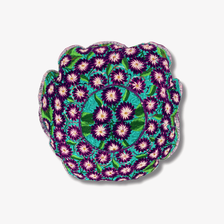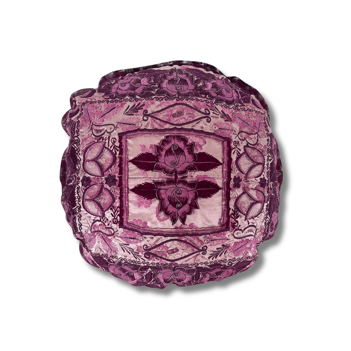 Up-cycled Moon Floral Huipil One-of-a-Kind Round Boho Pillow Cover - Guatemala