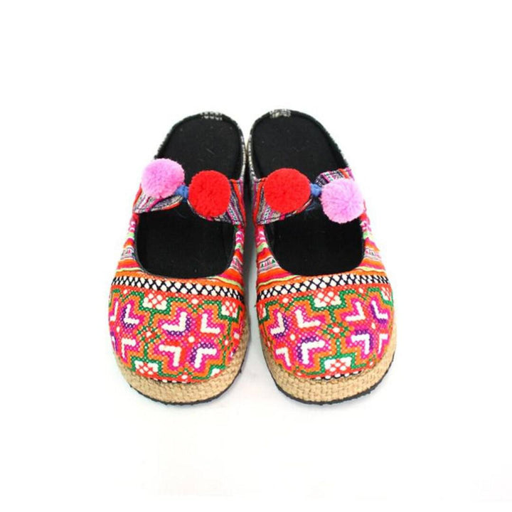 Upcycled Hmong Textile Fabric Clog Shoes - Thailand