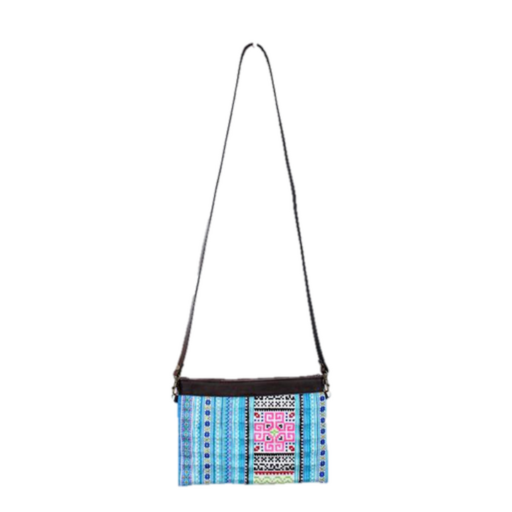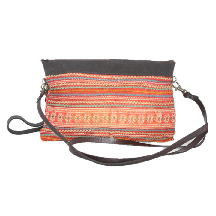 Upcycled Hmong Traditional Fabric Leather Crossbody - Thailand