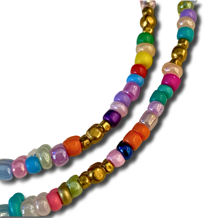 Looking for a stylish and unique jewelry set? Check out our Veranda glass beads choker and bracelet Set, handmade by Nu in the highlands of Thailand following fair trade guidelines. Crafted with colorful glass beads, this set is perfect for adding a pop of color to any outfit. The non-tarnish lobster clasp ensures durability and easy wear.