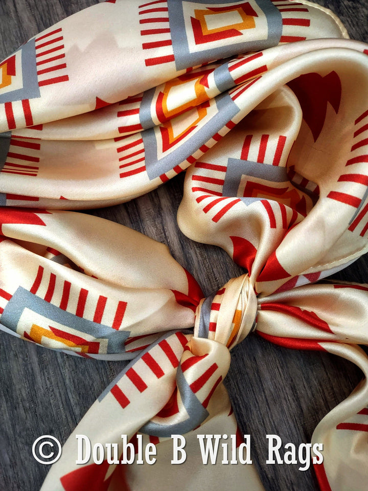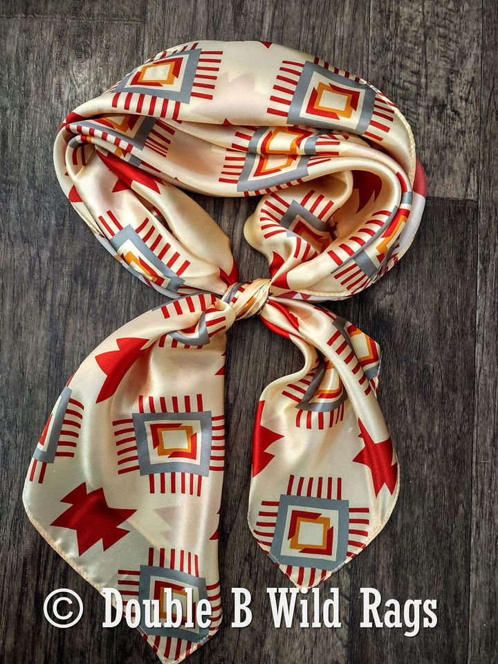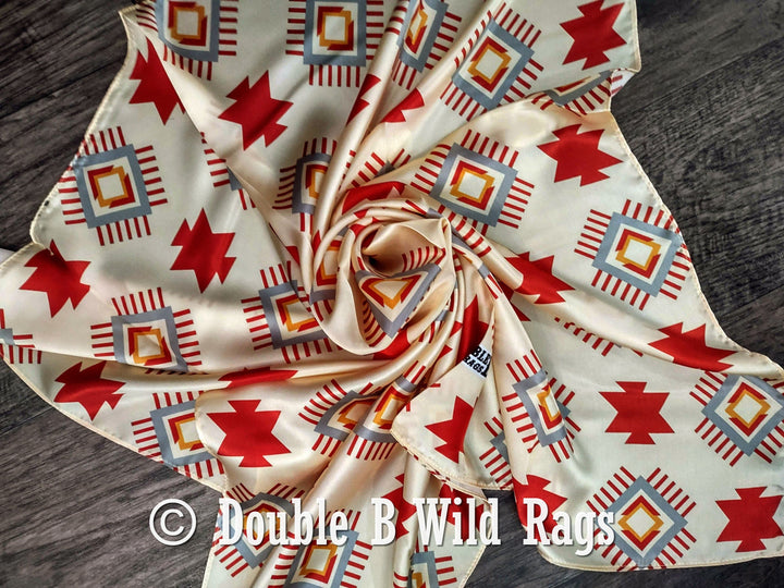 Wild Rag 100% Silk Aztec Ivory and Burgundy Cowboy Western Neck Scarf Bandanna by Double B Wild Rags