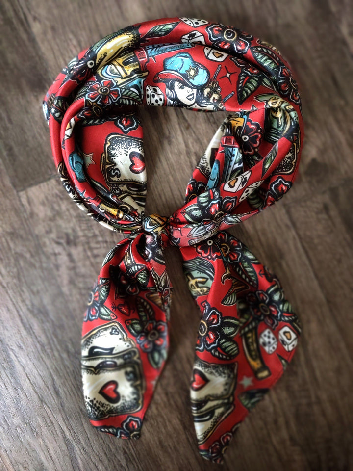 Wild Rag 100% SILK Deep Red Wild West Saloon Casino Cowboy Western Neck Scarf Bandanna by Double B Wild Rags